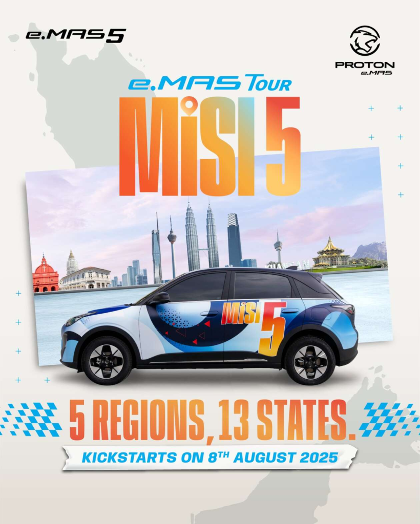 The MISI 5 Tour is more than a promotional roadshow—it’s Proton’s way of connecting directly with everyday Malaysians. From August to October 2025, the e.MAS 5 will stop at tourist hotspots and Proton e.MAS dealerships across five regions: Central, Northern, Southern, East Coast, and East Malaysia.