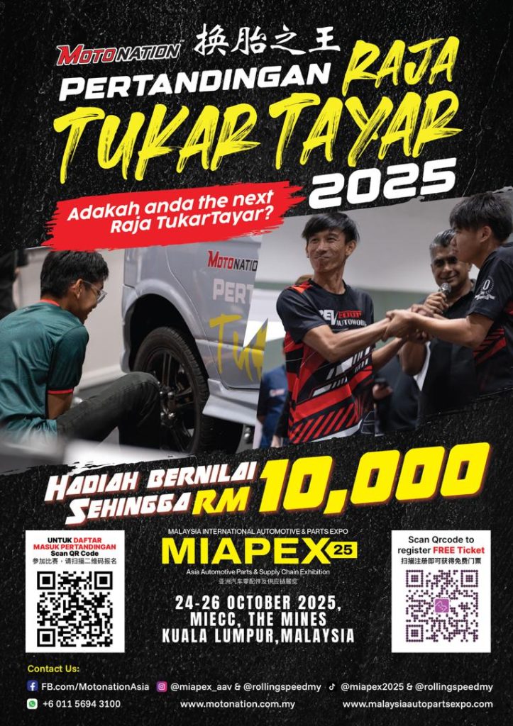 SERI KEMBANGAN, October 13, 2025 – Prepare your impact guns and warm up your muscles! The ultimate test of automotive skill, speed, and precision—the Raja Tukar Tayar Competition—is back. Held as a central attraction during the MIAPEX Event at MIECC Seri Kembangan from October 24 to 26, 2025, this thrilling competition challenges both professionals and enthusiasts to prove they have what it takes to be crowned the King or Queen of the wrench.