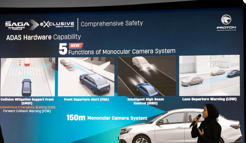 For the first time ever, the Saga enters the modern safety league with Advanced Driver Assistance Systems (ADAS) on the Premium variant. Using a monocular front camera and rear radar, it offers: