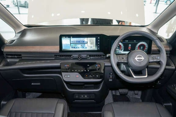 Step inside, and the generational leap over the previous model is immediately apparent. The Serena’s dashboard has been completely redesigned around a dual 12.3-inch display layout, comprising a fully digital instrument cluster and a central touchscreen running Nissan Connect infotainment. Wireless Apple CarPlay and Android Auto come standard, ensuring seamless smartphone integration.