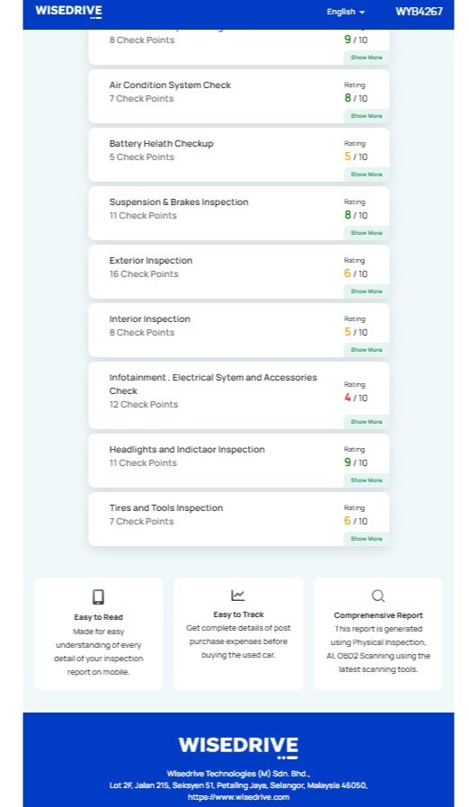 The WISEDRIVE AI technology works by comparing visual and audio data against thousands of known problems detected and identified by the AI system, including problems that cannot be inspected with human eyes and ears. It employs cutting edge machine learning, computer vision and acoustic processing technology to analyse 150,000 visual and 31 million audio datasets covering 8,245 car models and variants, including national brands Proton and Perodua, from the time their models were launched in 1985 and 1994 respectively.