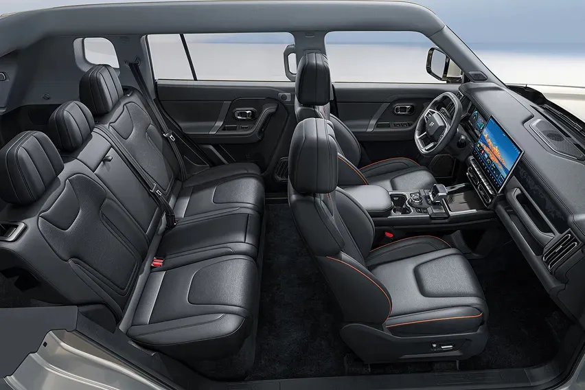 Step inside, and the Jetour T1 shifts its focus toward comfort and connectivity. The cabin features a clean, symmetrical layout paired with premium touches such as leather upholstery and ambient lighting.